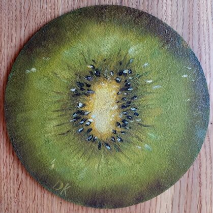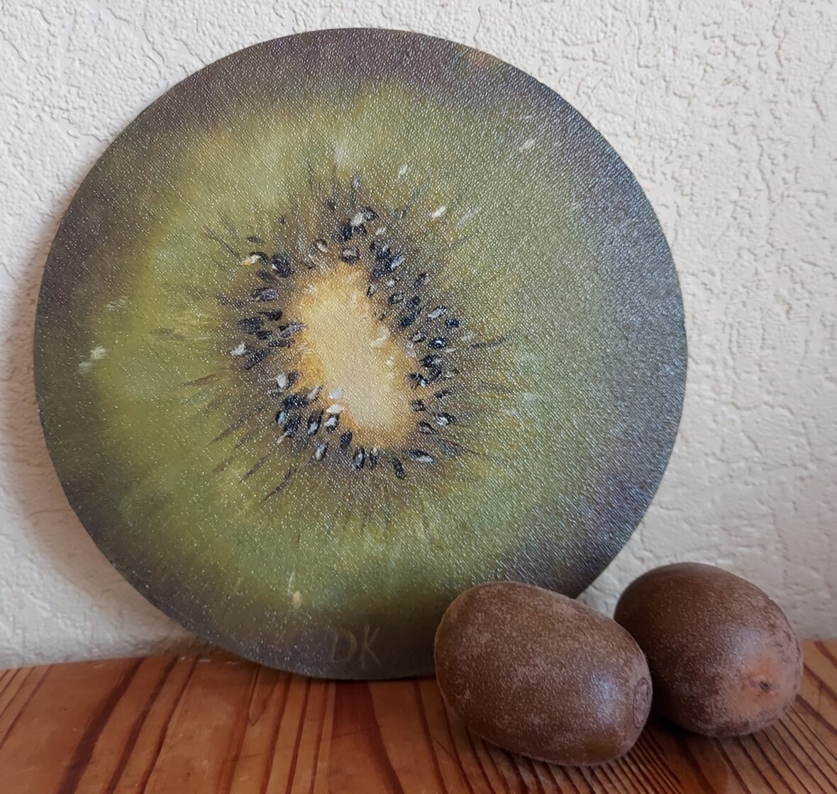 Kivi, 20 cm D. Audekls uz kartona, eļļa