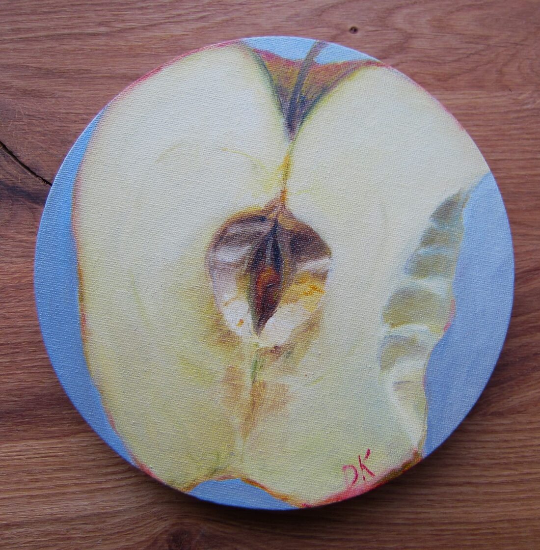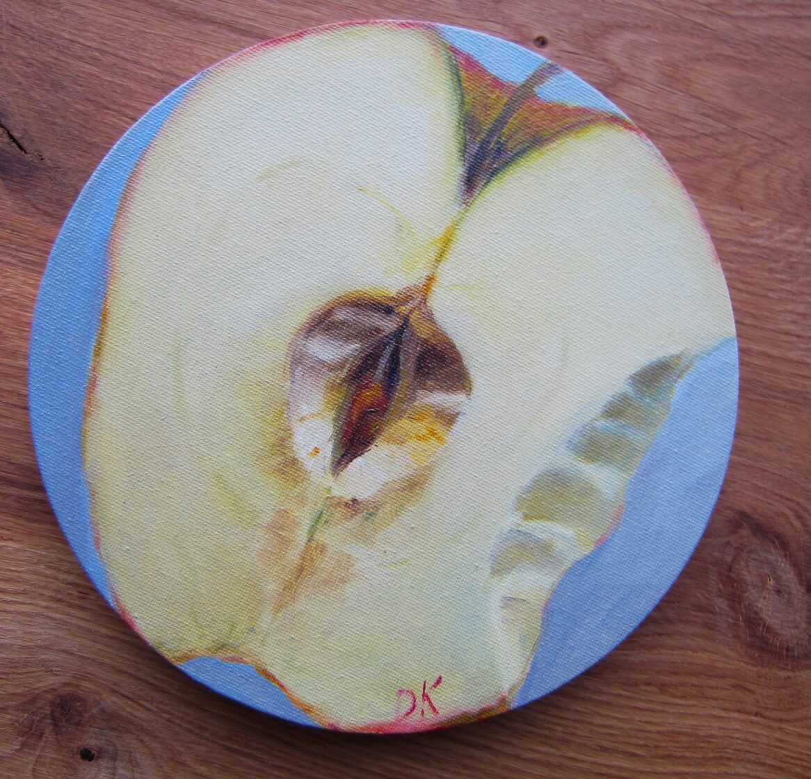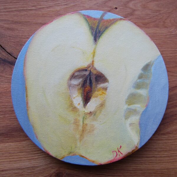 Mazliet aizkosts ābolītis. Audekls uz apakšrāmja, eļļa. 20 cm D. 40 EUR