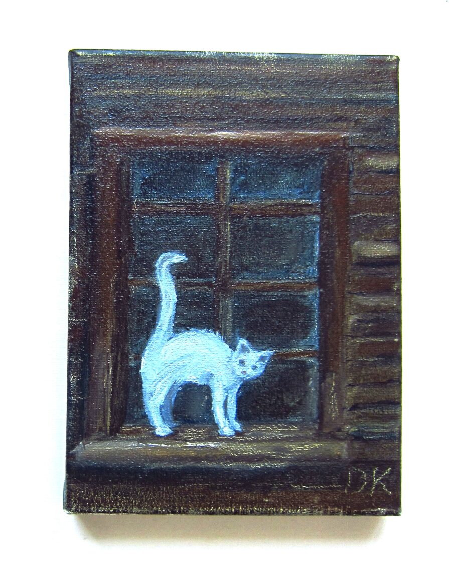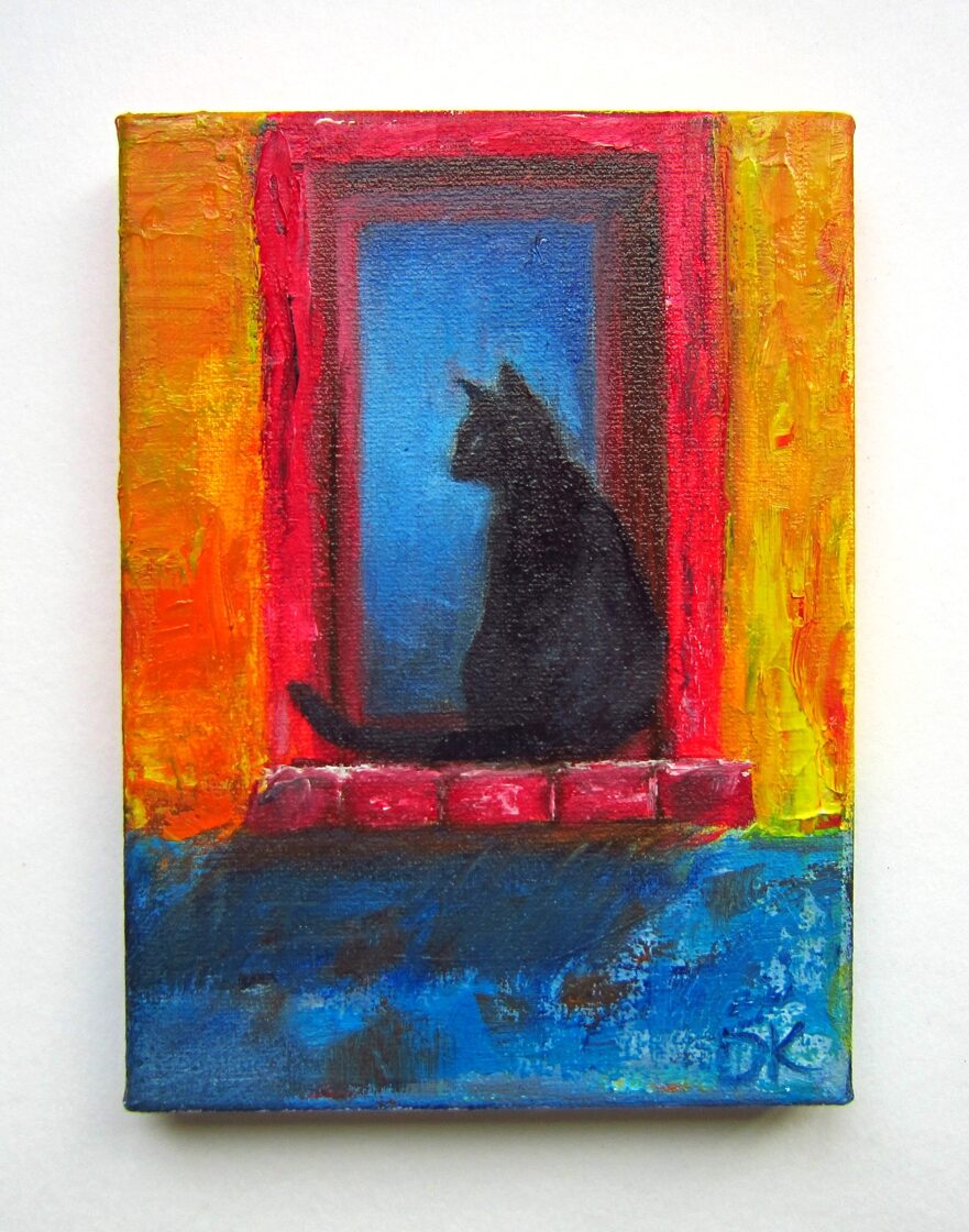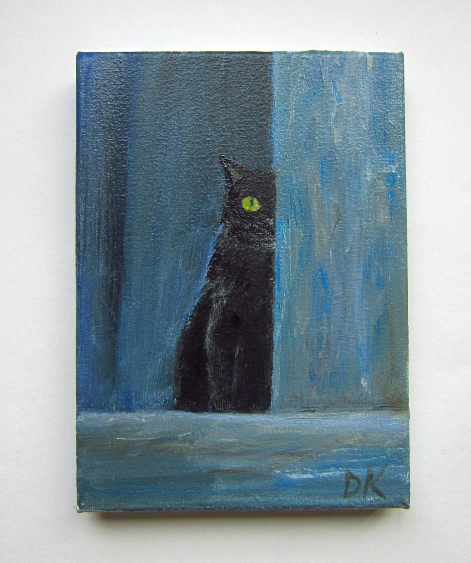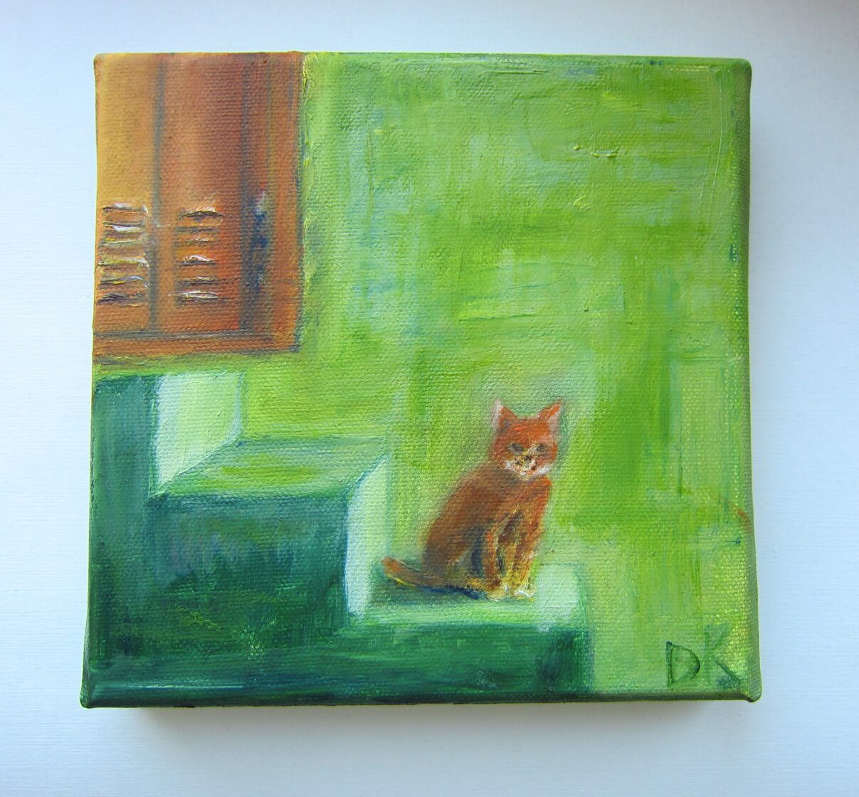 Audekls, eļļa. 13 x 18 cm, Nav pieejams. Kaķis jau pie jaunā saimnieka:)