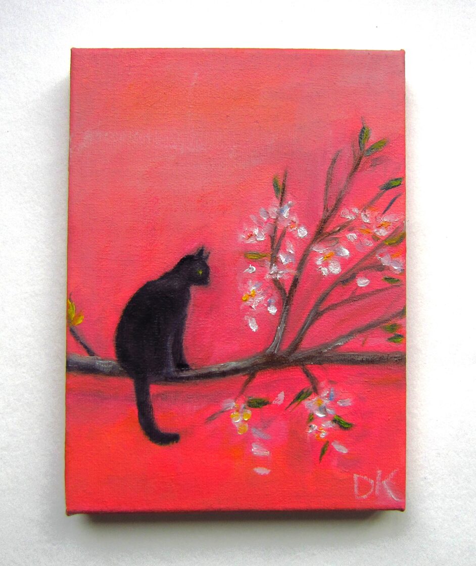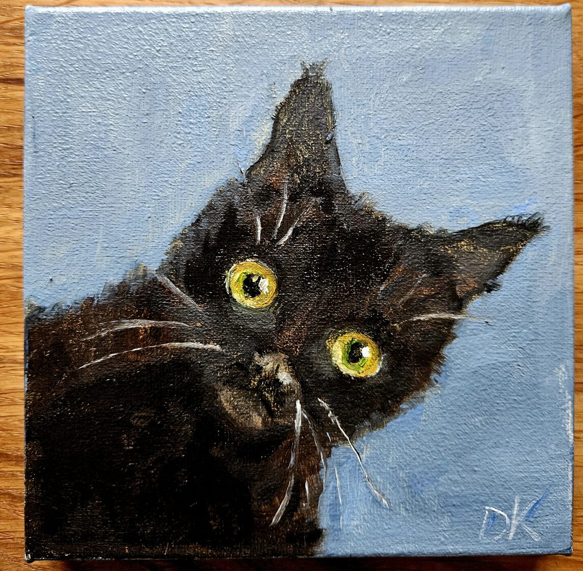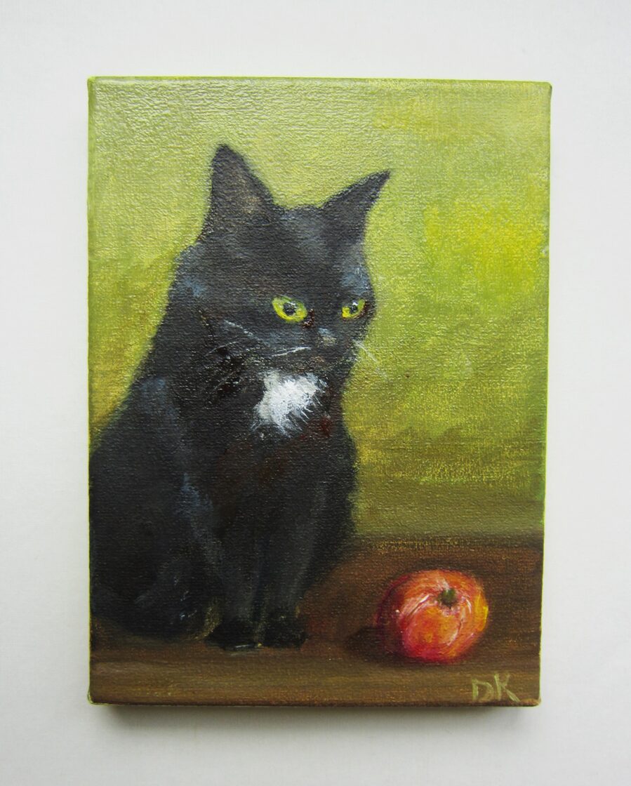Melnais kaķis ar vīna glāzi. 20 x 30 cm. Audekls, eļļa. 30 EUR. PIEEJAMS -