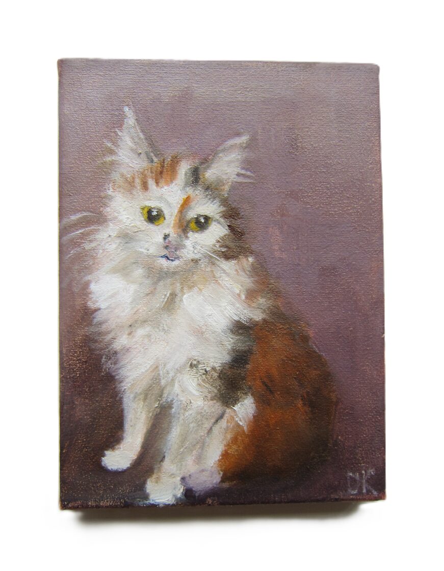 Audekls, eļļa. 13 x 18 cm. Nav pieejams. Kaķis jau pie jaunā saimnieka