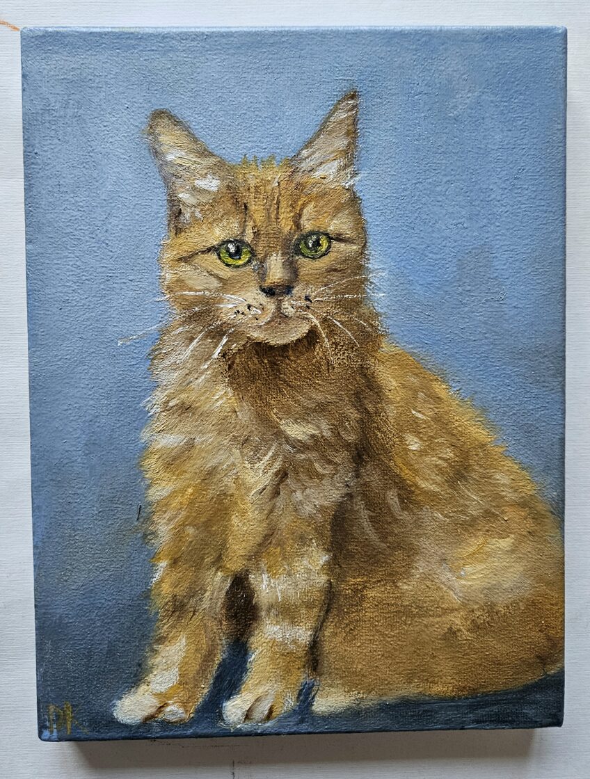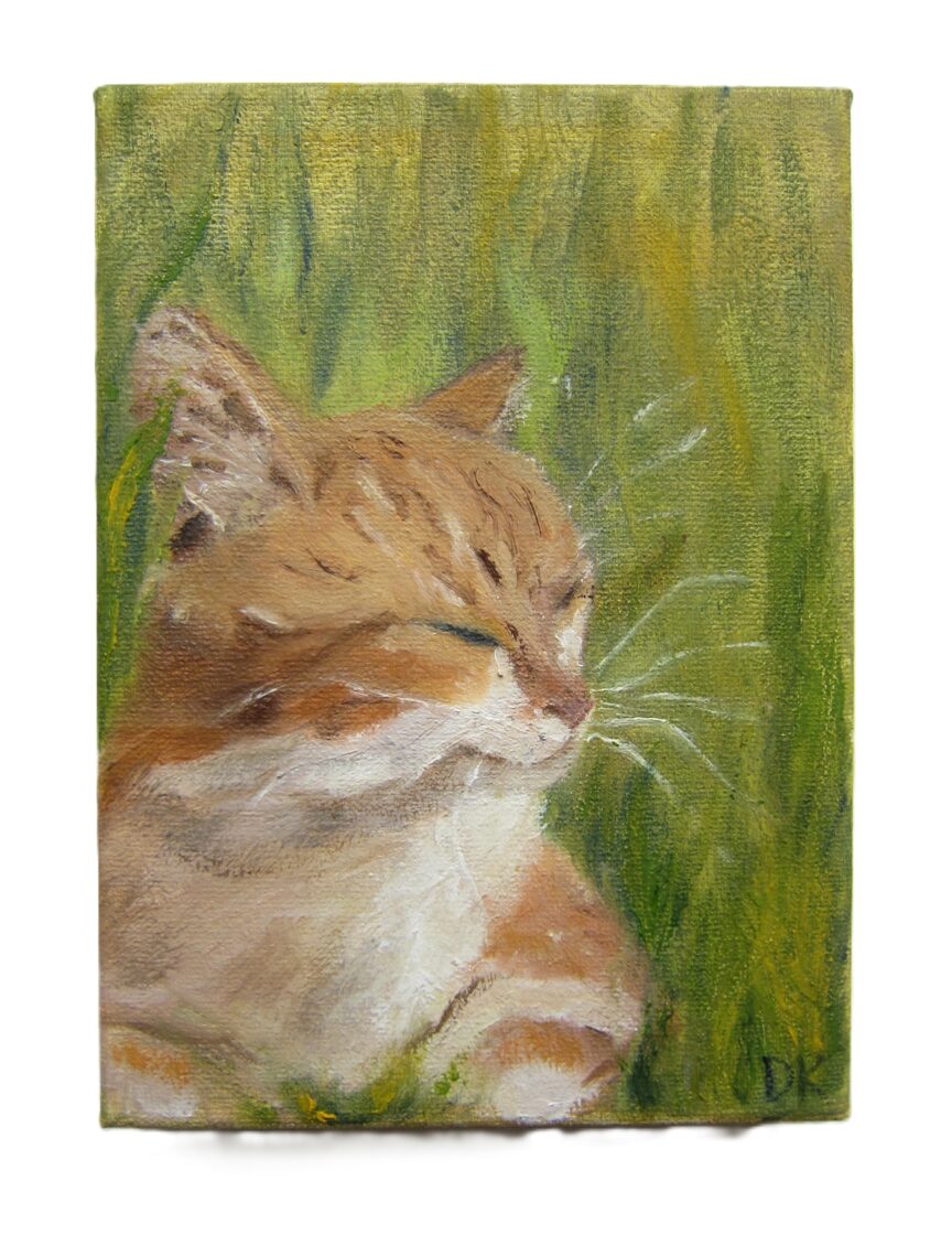 Saguris kaķis. Audekls, eļļa. 15 x 20 cm PIEEJAMS. 25 EUR -