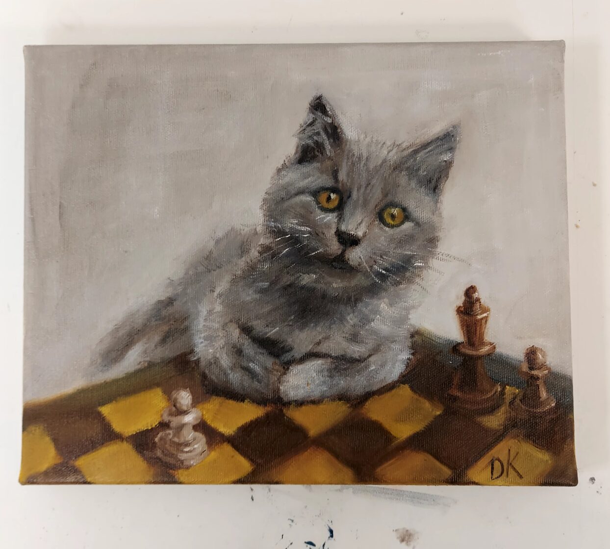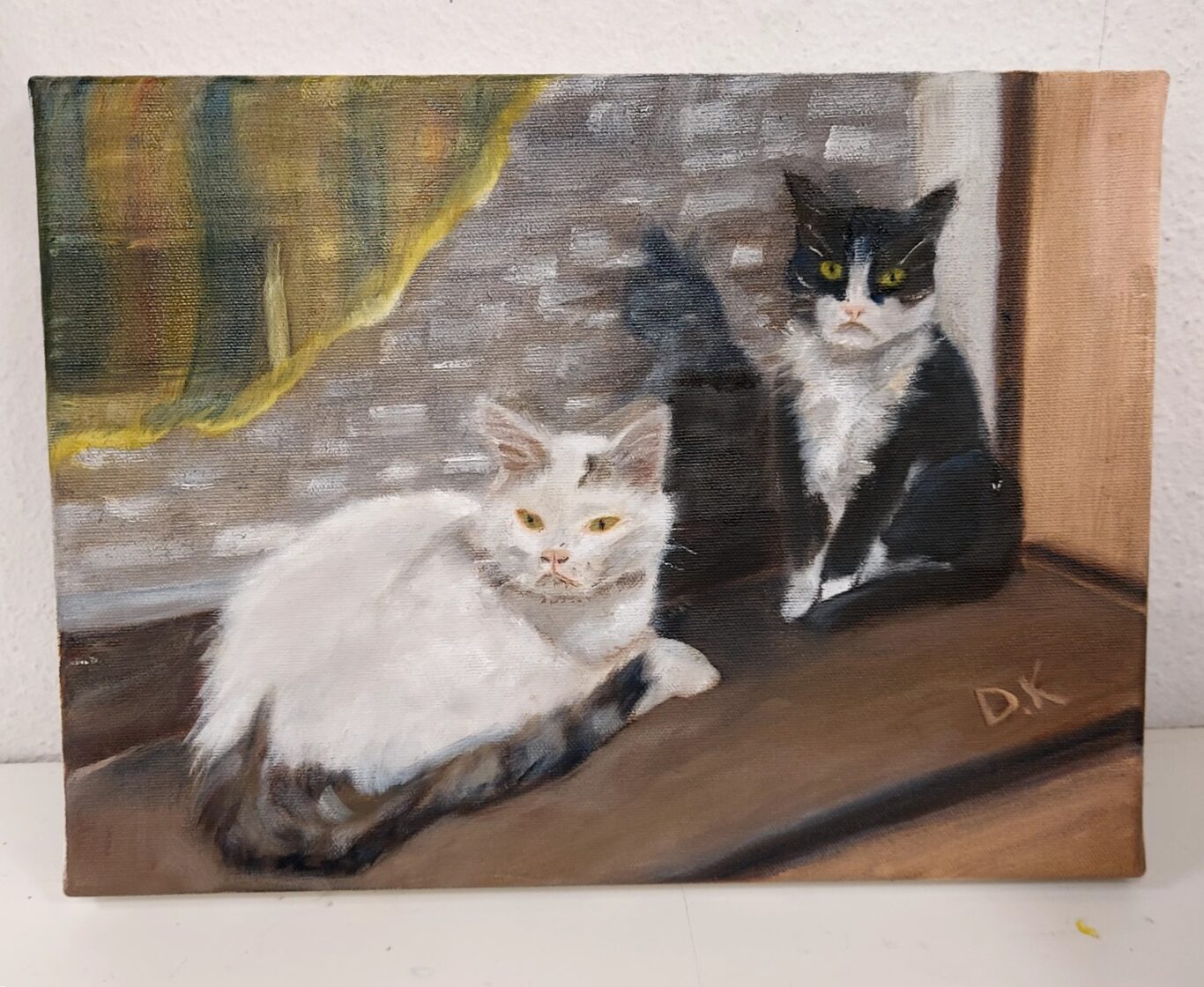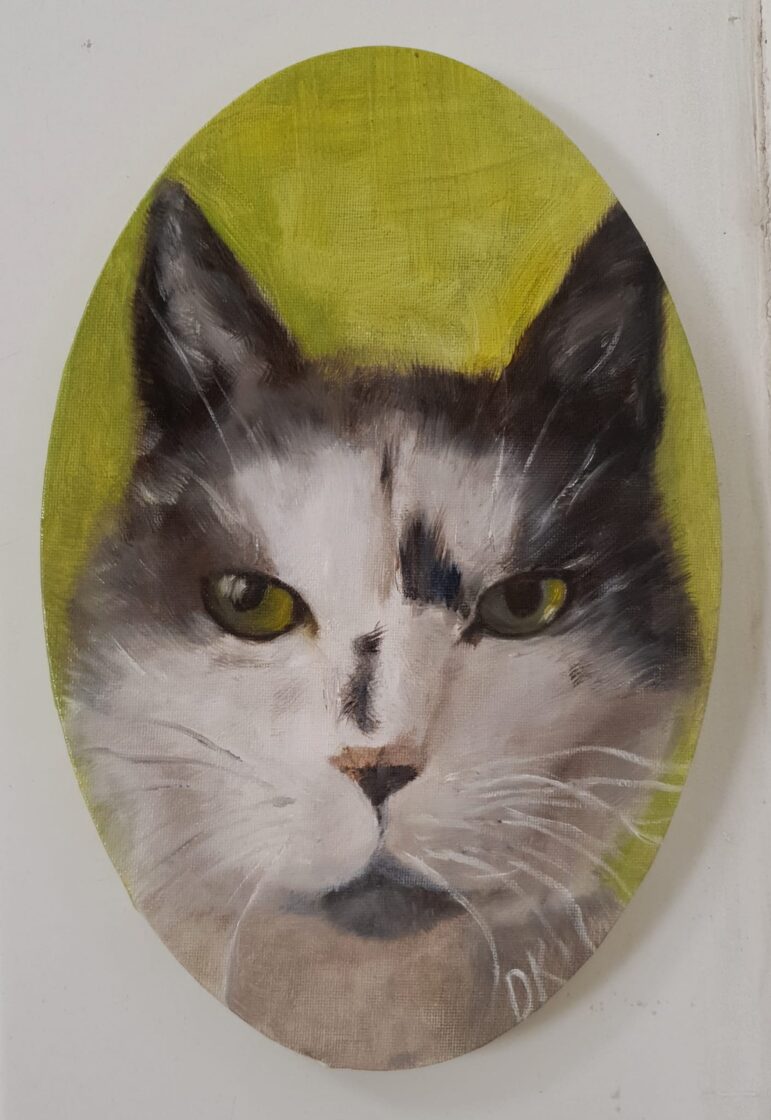 arī suņi vai kāds cits mājas mīlulis, kura portretu vēlaties pasūtīt. Sākās ar to, ka uzgleznoju draugu un radinieku kaķu portretus. Pēc tam arī dažus suņus. Lielākā daļa portretu tapuši pēc pasūtījuma.