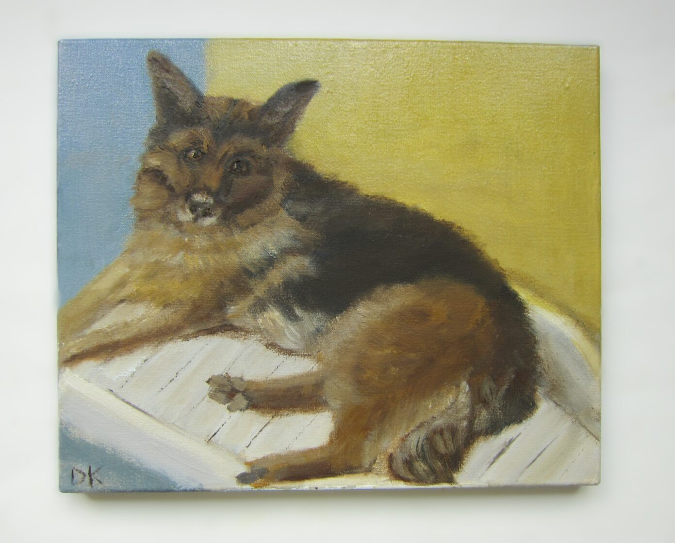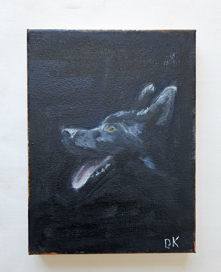 Melnais suns. Audekls, eļļa. 15 x 20 cm. PIEEJAMS. 20 EUR -