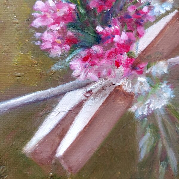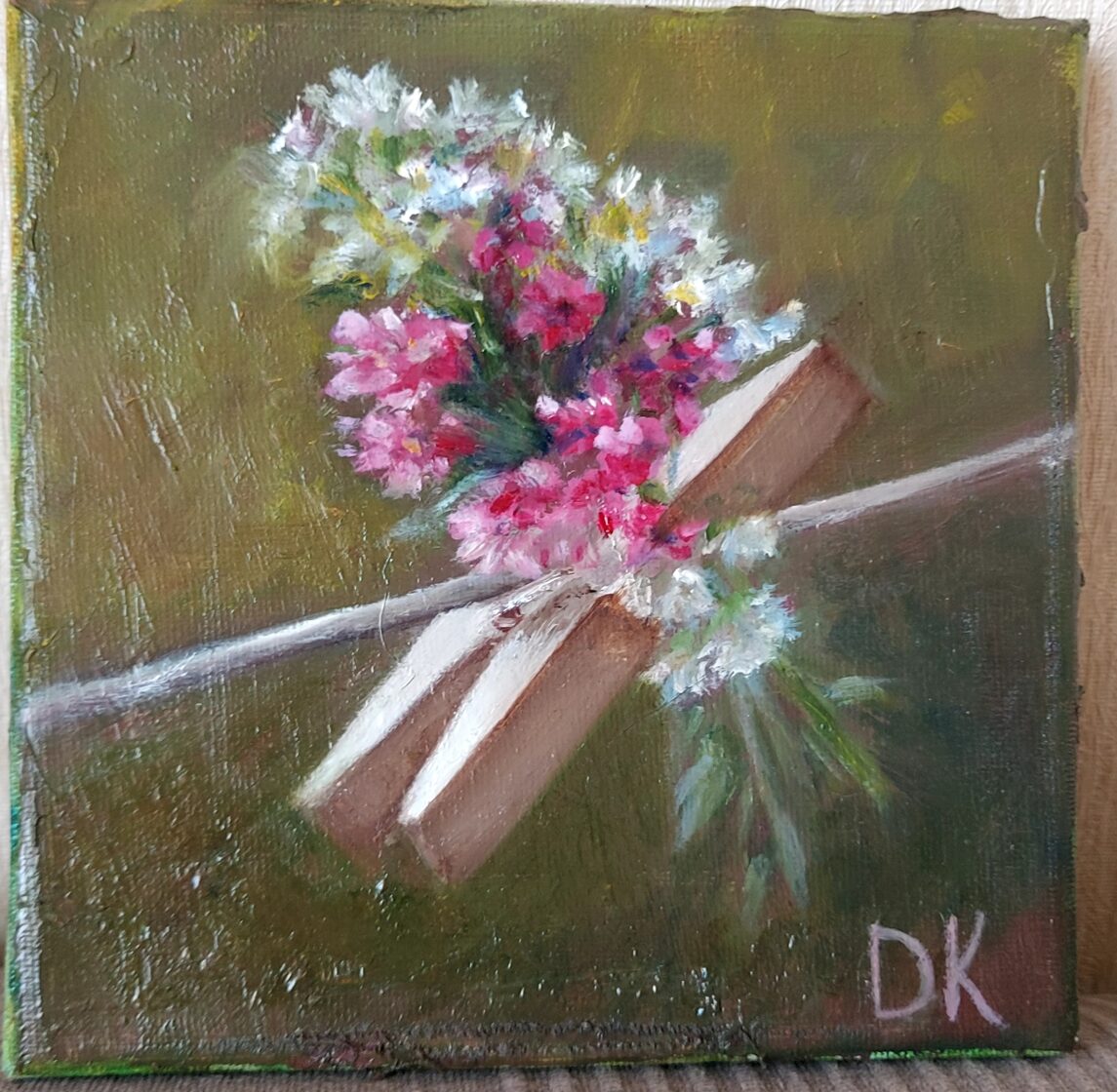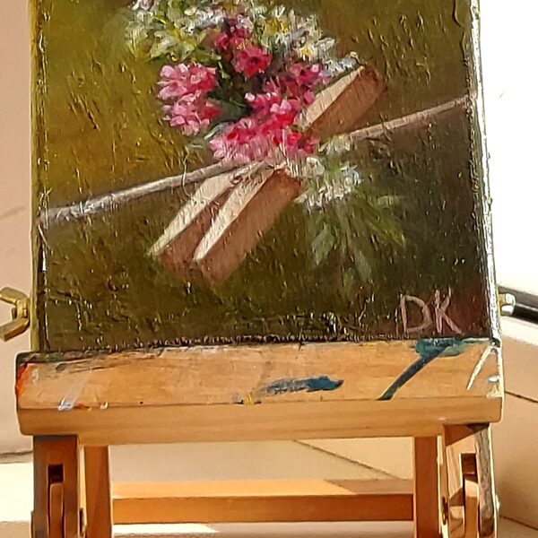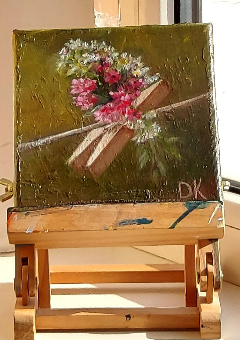 Maza, mīlīga gleziņa. 15x15 cm. Audekls uz apakšrāmja, eļļa. Jau nosūtīta uz jaunajām mājām.