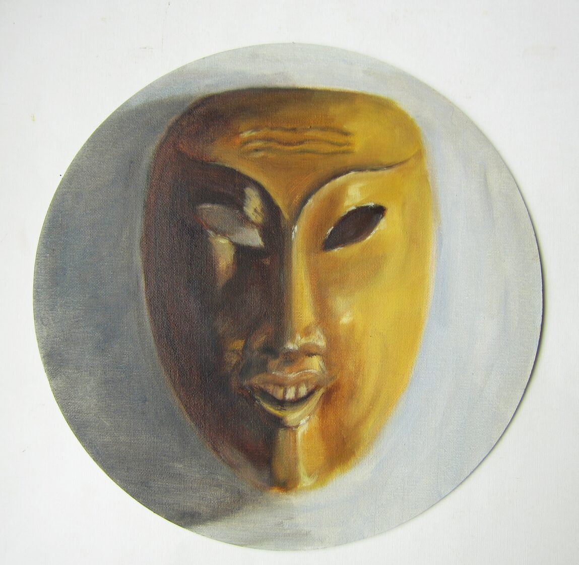 Maska. 30 cm diametrā. Audekls uz kartona. 25 EUR, pieejama